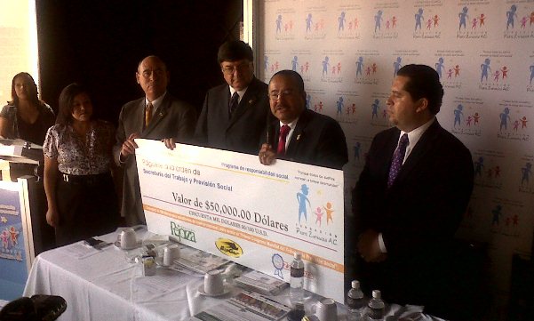 El Primer Congreso Mundial del del Derecho Trabajo y de la Seguridad Social, recibió este día un donativo de 50 mil dólares. Esta cantidad fue aportada mediante un cheque por la Fundación Pedro Zaragoza, A.C., y fue entregada al Secretario del Trabajo y Previsión Social del Gobierno del Estado, Fidel Pérez Romero.