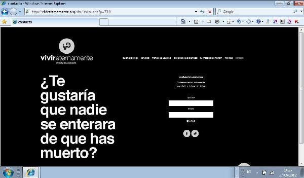 Este proyecto ofrece al usuario el manejo post-mortem de sus cuentas de correo electrónico y de Redes Sociales, e inicia su perturbadora propuesta con la siguiente pregunta: “¿Qué deseas que se haga con tus redes sociales después de tu muerte? Envía la siguiente información, nuestros especialistas la analizarán y te enviaremos un diagnóstico sobre los procedimientos que debes realizar para dejar en orden tu vida en las redes sociales”.