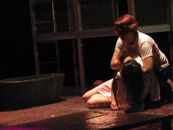 -¿Cuántos dementes seguirá creando esta sociedad- dice uno de los personajes de la obra, cuya trama se desarrolla con una escenografía que consiste sólo de una armazón de metal y malla, que hace las veces de sala de alumbramiento, cárcel, transporte público, casa, espacio de reunión, sala de juicio y corredor de la muerte.