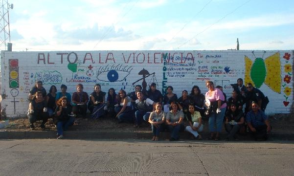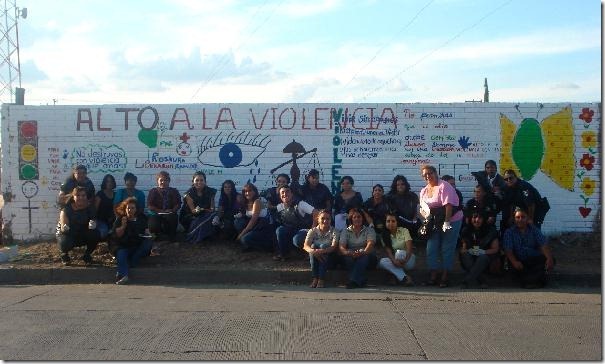 Posteriormente, las y los participantes acudieron a la calle Emiliano Carranza, en la Colonia Centro, donde pintaron un mural con las imágenes y mensajes que diseñaron. En el mural se observan frases como: “No destruyas lo que amas con violencia”, “Miedo, más amor, igual a violencia” y “Alto a la violencia”. De esta manera, dejaron así el mensaje no sólo para los participantes del taller, sino también para la población.