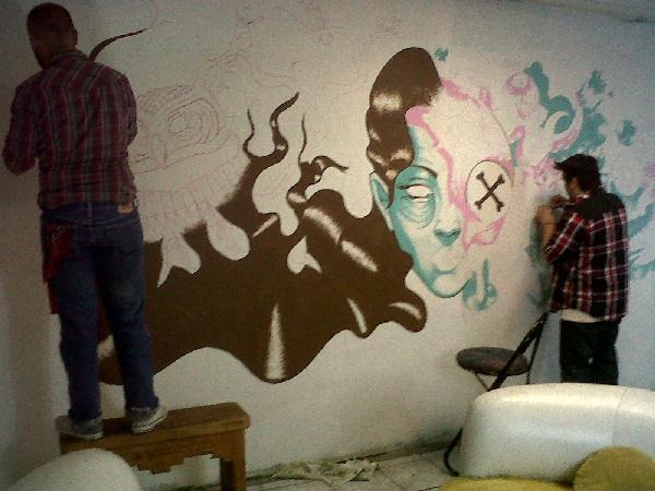 Los artistas gráficos Mostasho y Raúl Urías unieron sus creatividades y talentos para llevar a cabo conjuntamente un mural ante fans e invitados. Este evento fue denominado «Pinta en vivo», y tuvo como sede Asenzo Café-Bar, el lugar bohemio favorito de la la juventud juarense. Mostasho es de Ciudad Juárez, y Raúl de Chihuahua capital. Según se informó, es la primera vez que ambos artistas realizan un trabajo conjuntamente.