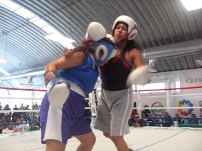 La boxeadora María Susana Uribe del Centro Comunitario ‘Revolución Mexicana’, en los 57 kilogramos venció por RSC, tras el abandono del combate por parte de su oponente Maribel López del Gimnasio Municipal Enrique ‘Kiki’ Romero.