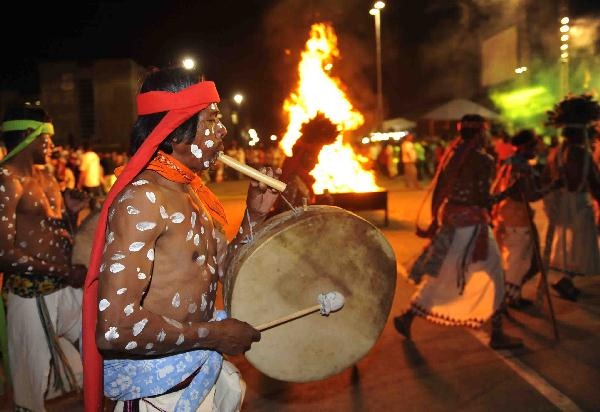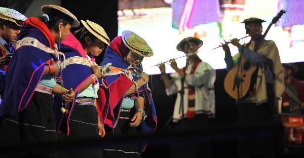 En representación de las etnias de Colombia, en la segunda parte se presentaron los Misak y los Inga del Putumayo. Antes, saludaron a los pueblos de América y luego con plantas medicinas bendijeron el aire, el agua y la tierra, «refrescándolos» y exteniendo la buena vibra a los presentes.
