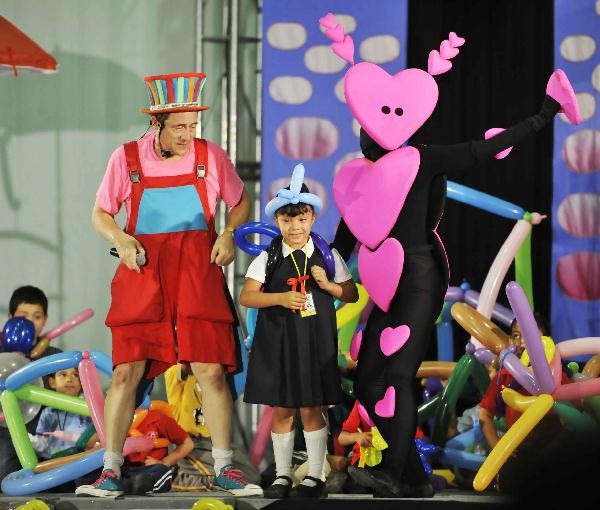 Se trata de Love Bug’s Hug, un performance que tiene una numerosa participación de los niños asistentes, quienes son invitados al escenario para formar parte de la historia.