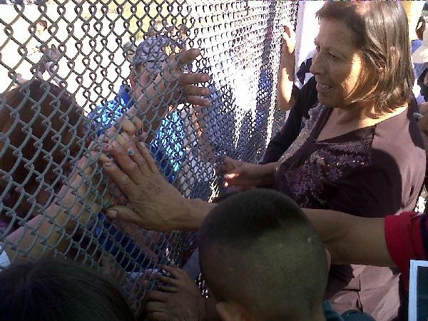 Luego de recitar a coro el Padrenuestro,los fieles se dieron el saludo de paz con sus dedos a través de las hendiduras de la malla metálica que se encuentra en la zona Anapra-Sunland Park.