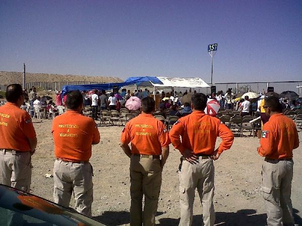 Esta vez, unidades de la Border Patrol y del Grupo Beta, se acercaron a pocos metros del lugar, e inclusive del lado mexicano el Delegado del Instituto Nacional de Migración y varios de sus oficiales estuvieron presentes durante toda la ceremonia.