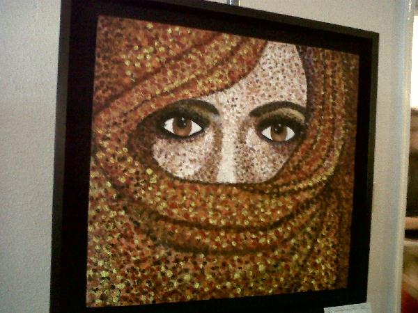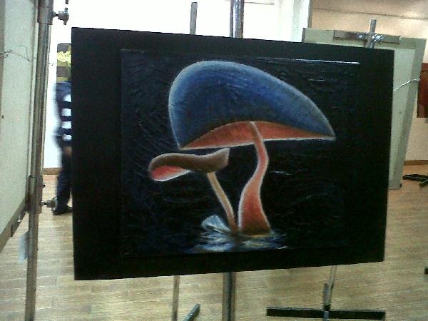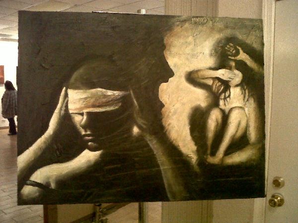 Una de las artistas -Wendy Marisol Pérez- aportó un par de cuadros con temática social: «Disfuncional» (recreación de una escena de secuestro y tortura), así como «Florecer ante la adversidad», con el desierto como elemento simbólico.