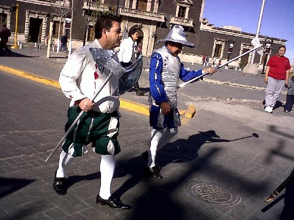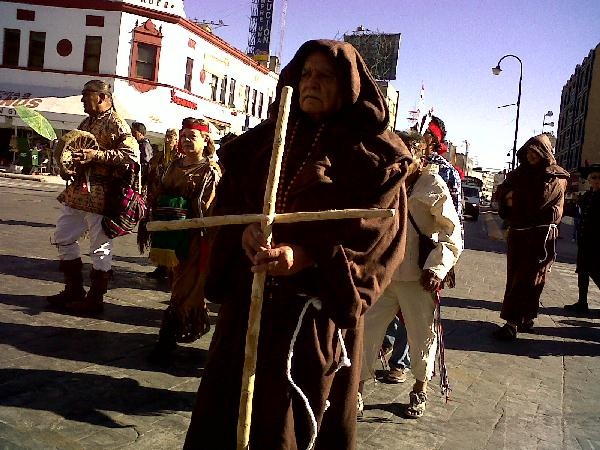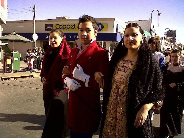 Integrantes de la Sociedad de Historiadores «Paso del Norte», tuvieron a su cargo la representación en calles de la Zona Centro, partiendo de la antigua Presidencia Municipal, para arribar a la Misión de Guadalupe, el edificio más antiguo de la ciudad.