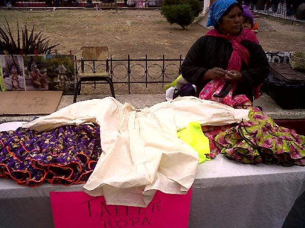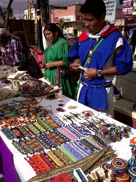 Mientras era esperada la participación musical de un grupo de la etnia mazahua, en la zona continuaba la venta de diversas artesanías: la chaquira, trabajada con maestría por los huicholes en collares, pulseras y otros adornos, y la ropa mixteca y rarámuri, de lo cual fueron ofrecidos talleres gratuitos.