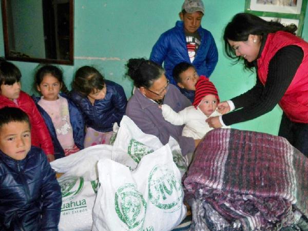 A ella se le hizo entrega de 12 cobijas, 11 chamarras a medida de cada uno de los infantes y seis despensas.