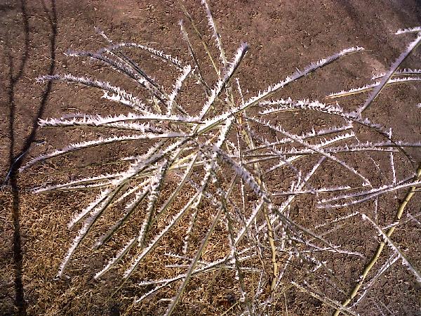 Luego de dos días de tormenta invernal y otro con temperaturas sumamente bajas y con la alta concentración de humedad en el ambiente, la Naturaleza hizo aflorar un bello fenómeno, con la aparición de escarcha en toda la vegetación.