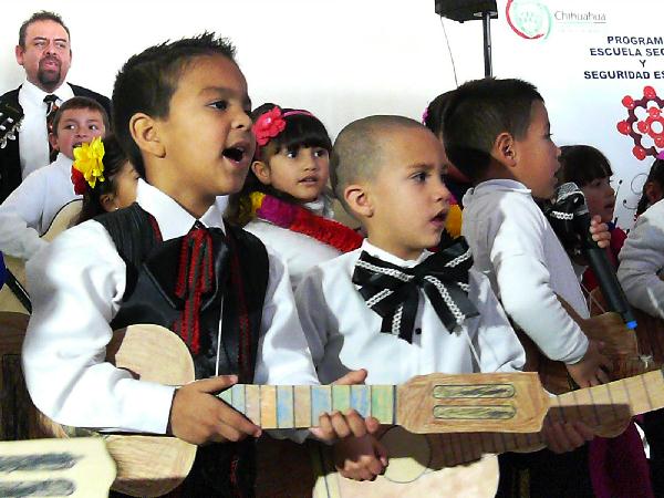 El Corrido de Chihuahua, La Norteña, La Cumbancha y México Lindo y Querido, fueron algunas de las canciones que estudiantes de tres planteles educativos del nivel básico, interpretaron esta mañana en el edificio que alberga las oficinas del gobierno estatal, como parte del programa “Ah, que la Canción”, que forma parte del proyecto operante Escuela Segura.