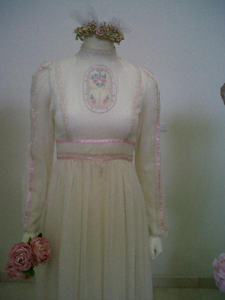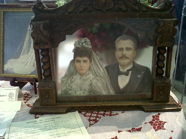 Hay vestidos centenarios, como el de María de la Cruz Aguirre, quien contrajera matrimonio con Ramón Licón en 1906, en la comunidad de Rosales, Chihuahua. A diferencia de la mayoría de los vestidos que son en blanco o perla, éste es una combinación dde colores azul y lila, y más parece un atuendo para una gala.