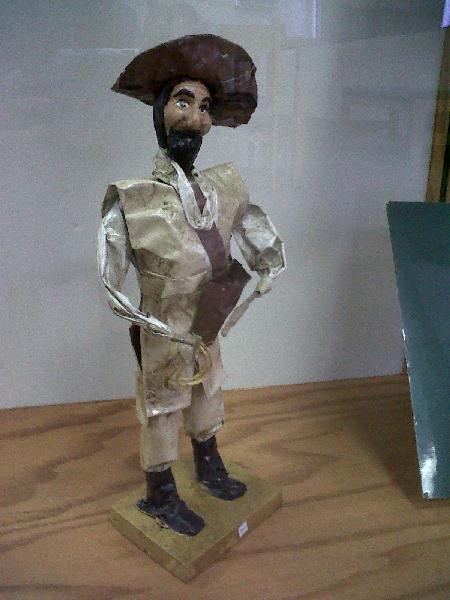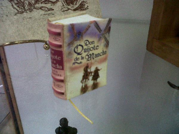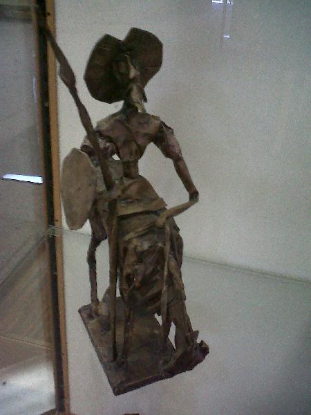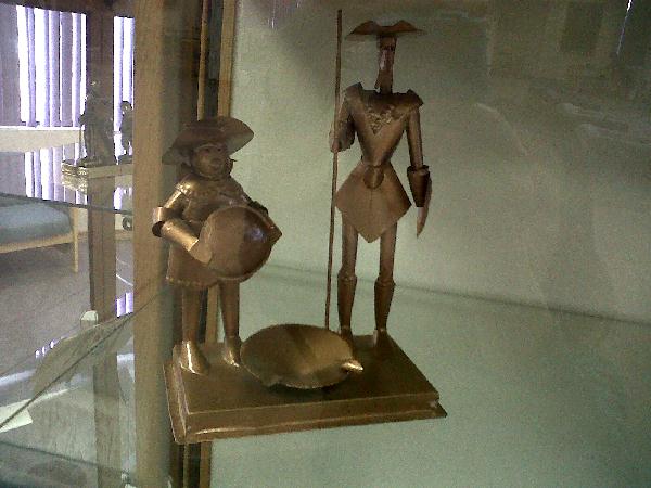 Sobresalen algunas de esas figuras realizadas con tubos, tornillos y tuercas, así como un par de ejemplares en miniatura de la inmortal obra de Cervantes.
