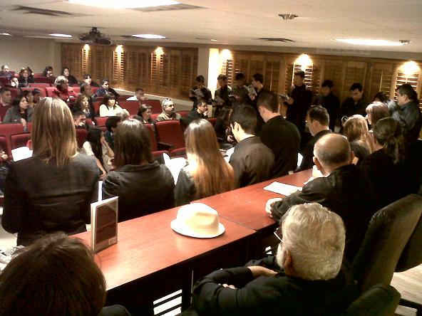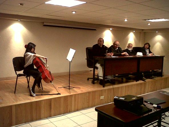 La presentación realizada la semana anterior en el Aula Eduardo García Máynez, del Instituto de Ciencias Sociales y Administración de la UACJ, contó con la participación de una jovencísima ejecutante del cello, y de los comentarios de dos docentes y con Ricardo León como moderador.
