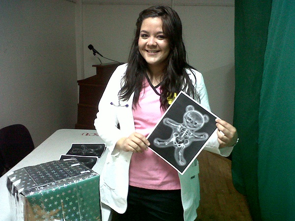 Cada niño escogió un muñeco de peluche, al que le tomó los signos vitales (con un estetoscopio real), emitió una receta, y para posteriormente lo llevó a la toma de rayos X (simulados) y finalmente al quirófano al haberse diagnosticado una fractura interna.