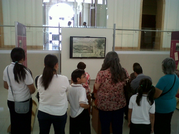 Una presentación multimedia es proyectada en una pantalla de plasma, con una emplia explicación por parte de especialistas del Instituto Nacional de Antropología e Historia, que es el promotor de esta exhibición que quedó instalada en la sala central del MUREF.