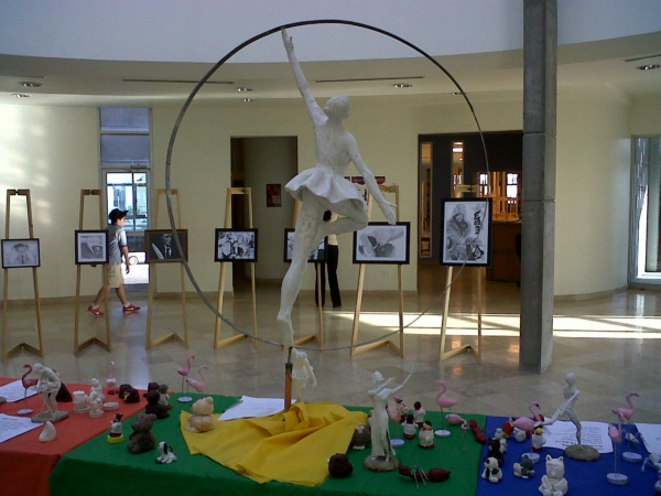 El Taller de Dibujo tuvo su exposición de fin de curso la tarde del sábado, en el lobby circular del Centro Universitario de las Artes. Un total 30 obras -todas debidamente enmarcadas y colocadas en caballetes- fueron exhibidas por los alumnos y sus orgullosos padres, acompañados por el instructor, el maestro Antonio Arreola.