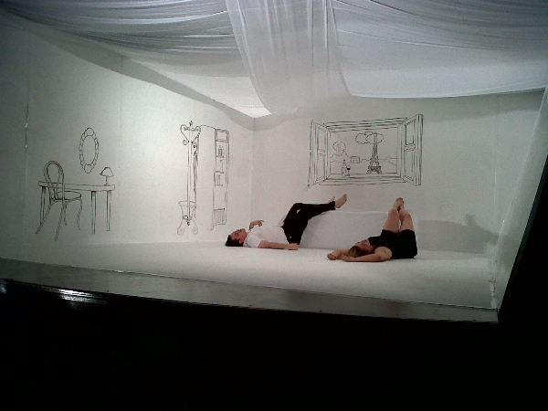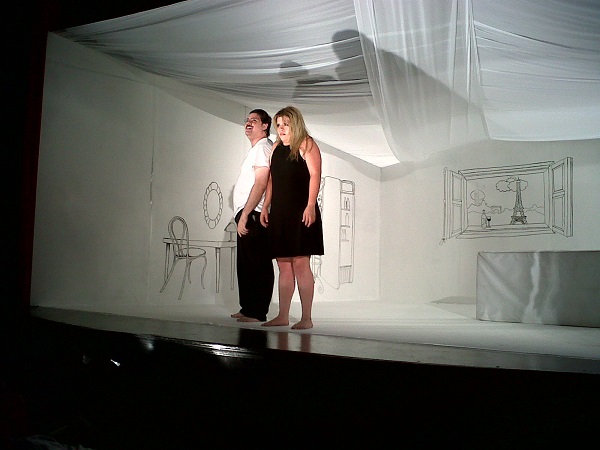 Se trata de un delirio a dúo, que por momentos se torna c-ómica y por momentos dramático. Hay lenguaje altisonante, esc enografía minimalista, excelente juego de luces y música ambiental.