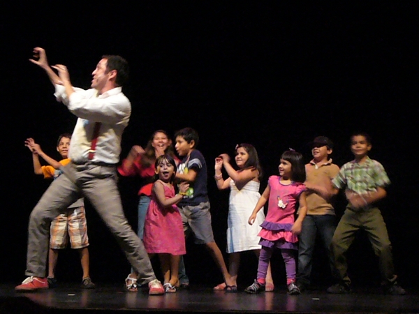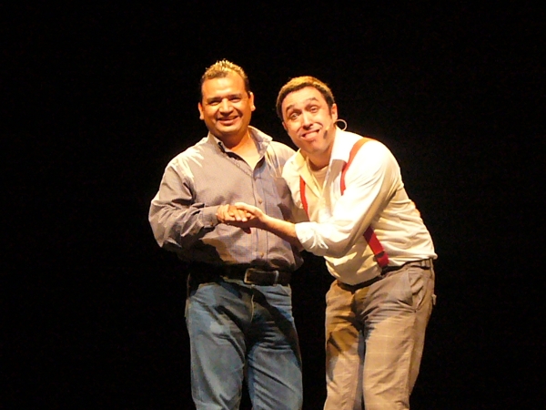 Integrantes del público fueron al escenario, para aportar ideas al diálogo entre los personajes, con una alta dosis de improvisación.