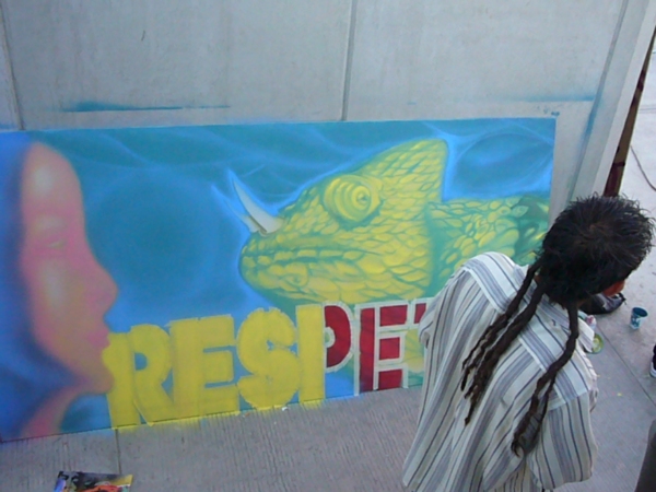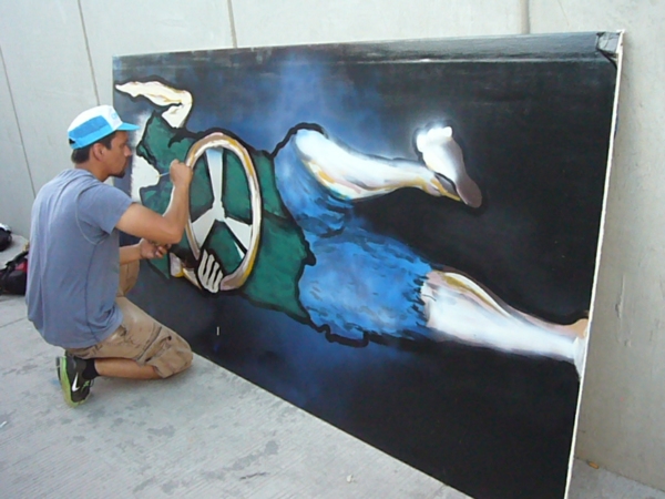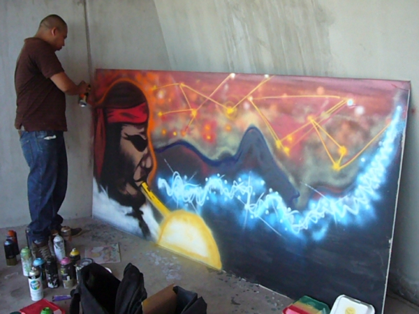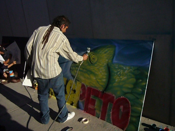 Una treintena de artistas dedicaron varias horas a elaborar su graffiti en planchas de madera, utilizando diversas técnicas, desde pintura con pincel y brocha, estécil y hasta pistola de aire.