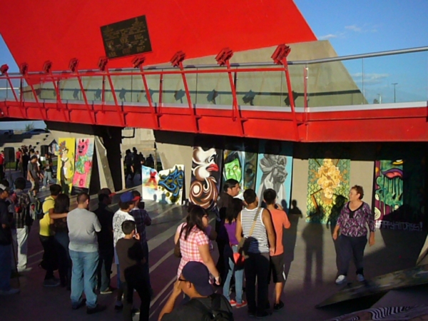 La Plaza de la Mexicanidad fue el escenario para el concurso de muralistas urbanos en el marco del magno evento Júárez`n Vivo. Fue ésta una de las actividades más concurridas, y que se llevó a cabo en forma simultánea con el certamen de danza tipo hip-hop.