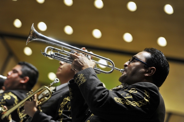 Para abrir el programa, la OUACJ había interpretado un popurrí de sones de mariachi, pero también otros ritmos como una cumbia colombiana y, contando con el acompañamiento del Trío de Saxofones de Beto Valtierra, otro popurrí de mambos de Pérez Prado, con coros al más puro estilo cubano, por parte de los propios músicos de la Sinfónica.