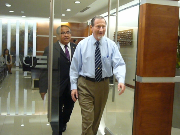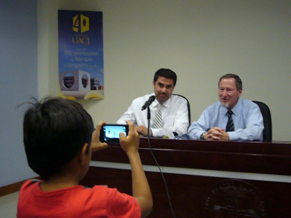 La agenda del visitante inició la mañana del lunes en la Rectoría de la UACJ, donde sostuvo un encuentro con el Rector Ricardo Duarte e integrantes del gobierno universitario, para de ahí pasar a una rueda de prensa.