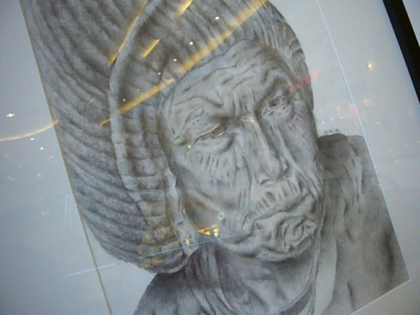 Una de las obras que llamó más la atención es un pequeño dibujo intitulado «Búho», de la artista Sarahí López Alvarado. Según la cédula que acompaña a la pieza, la técnica empleada es mixta: lá`piz, acuarela, tinta y whisky.