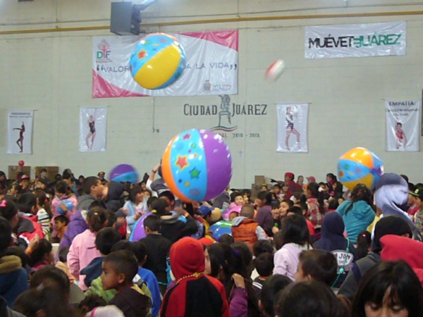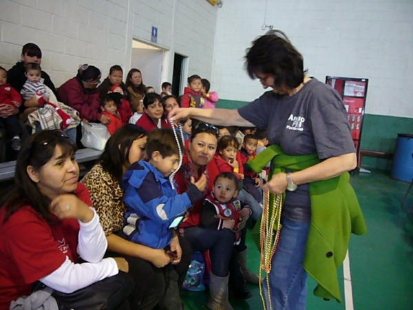También hubo oración y predicación, y se les repartieron dulces y collares de fantasía. Todos habían sido llevados en unidades de transporte público al Gimnasio Bertha Chiu, por cortesía de un empresario del ramo.