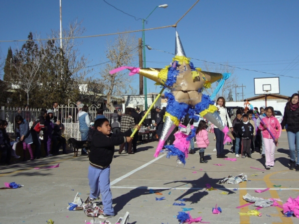 La comunidad de San Agustín, ejido ubicado a 30 kilómetros de Ciudad Juárez, festejó esta mañana a los niños con motivo del Día de Reyes (con rosca y todo).
