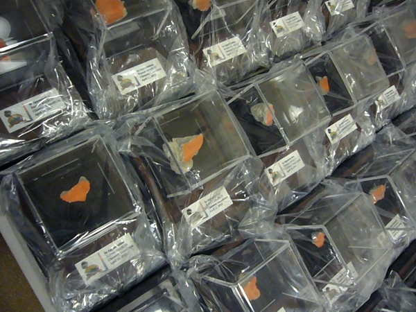 Lo que llamó la atención de los homenajeados, fue que cada placa tiene adherido o incrustado un trozo de concreto o de metal proveniente de los escombros de las chimeneas de Asarco (como una especie de souvenir), en recuerdo de aquel hecho memorable.