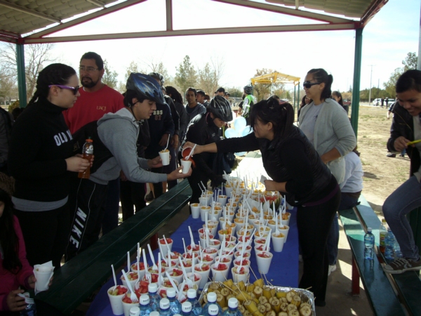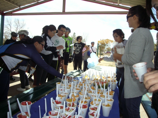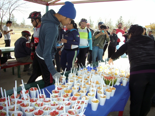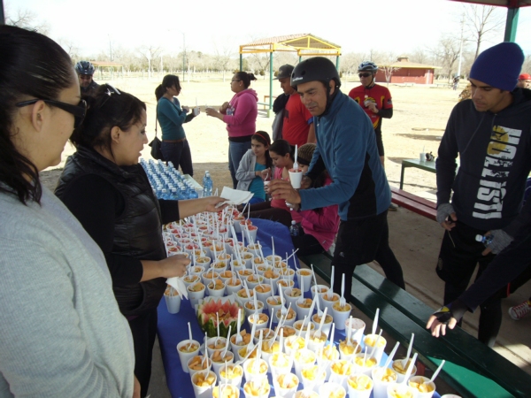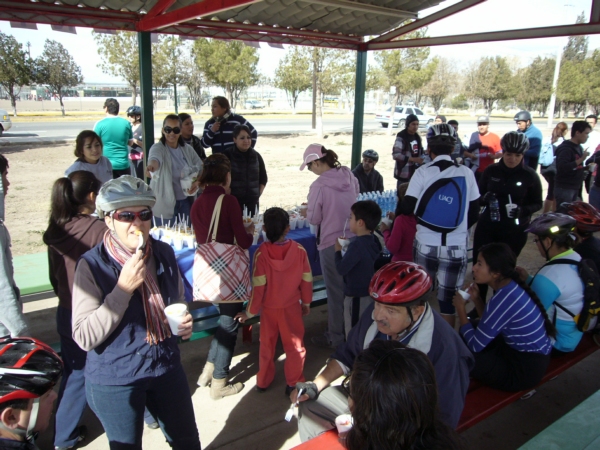 A mitad del trayecto, en el Parque del Chamizal, fue establecida una zona de descanso para que los ciclista tomaran un descanso, además de proveerseles de agua purificada y coctel de frutas.