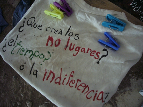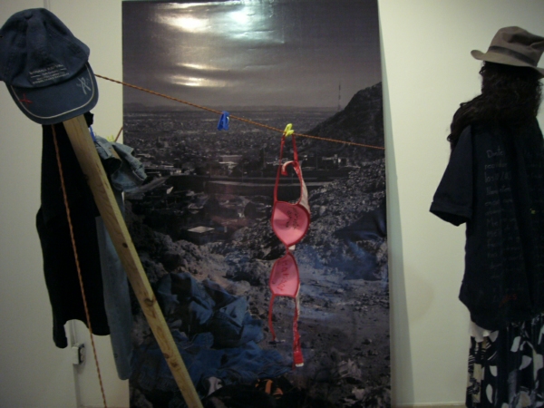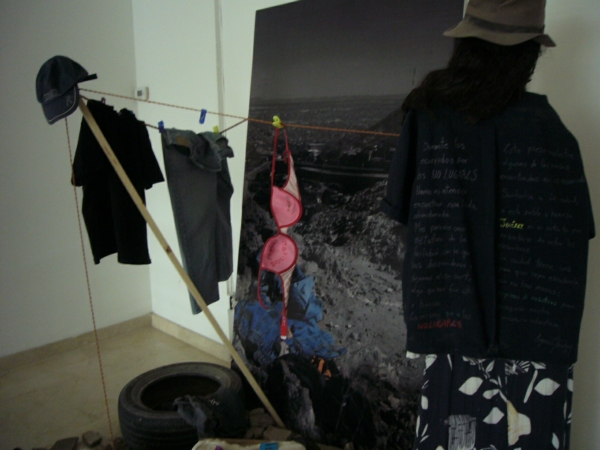 «¿Qué crea los no lugares? ¿El tiempo? ¿O la indiferencia?», es la idea planteada al espectador apenas cruza el umbral del recinto que alberga esta exposición, para encontrarse con una impactante instalación realizada a partir de objetos encontrados en las zonas visitadas: ropa interior, zapatos, una llanta, una reja de madera y tierra de la Sierra de Juárez, con el fondo de una toma panorámica de la ciudad tomada desde el Camino Real e impresa en una fotografía de gran formato en blanco y negro.