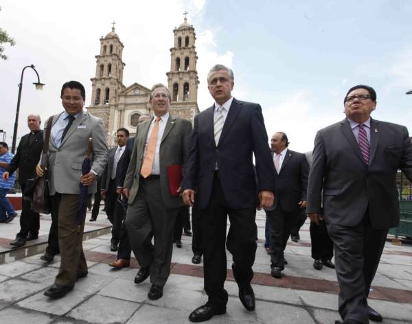 Acompañado del Presidente Municipal, Enrique Serrano Escobar, quien le dio la bienvenida y agradeció el apoyo brindado para respaldar diferentes programas de seguridad, educación y desarrollo social, el diplomático norteamericano expresó que temprano por la mañana sostuvo una conversación muy provechosa con el edil juarense y el Gobernador del Estado, César Duarte Jáquez, para luego expresar su agrado al comprobar la actividad que se realiza en el centro de la ciudad.