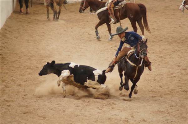 Además, desde muy temprano el público disfrutó de un espectáculo de charrería acompañado de la tradicional música regional, en el que jinetes de todas las edades desfilaron en sus caballos y mostraron sus acrobacias en el lienzo.