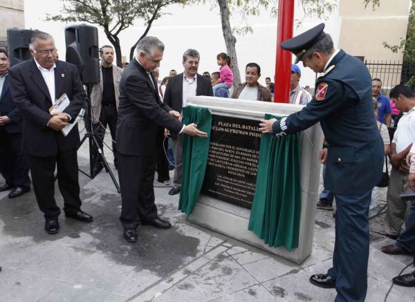 La placa de granito de 1 metro por 75 centímetros, fue develada por el Presidente Municipal y el Comandante de la Guarnición Militar de la Plaza, Vicente Antonio Hernández Sánchez, en presencia de autoridades municipales y ciudadanos juarenses que fungieron como testigos de honor.