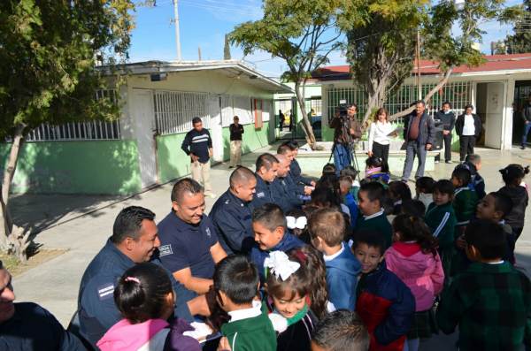 La Subsecretaría de Educación Cultura y Deporte en la Zona Norte informa que en emotiva ceremonia, el colectivo escolar del preescolar Almas Infantiles y la primaria estatal Francisco I. Madero, agradecieron y reconocieron la intervención oportuna de policías municipales, durante las pasadas lluvias del mes de septiembre.
