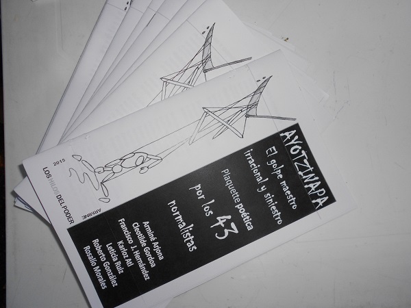Asimismo fue presentada la plaquette poética «Ayotzinapa: el golpe maestro irracional y siniestro», con material de Arminé Arjona, Cleo Gordoa, Francisco J. Hernández, Karloz Atl, Leticia Ruiz, Roberto González y Rosalío Morales.