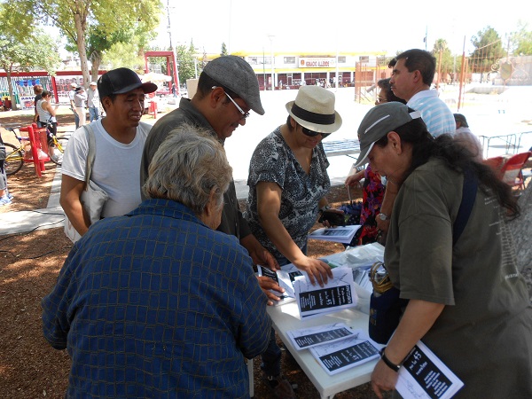 El trueque consistió en un ejemplar de la plaquettea cambio de una lata de pintura, de colores preferiblemente rojo y negro, que serán utilizadas en intervenciones artísticas que se realizan cada día 26 en reclamo de la localización y entrega con vida de los 43 normalistas de Ayotzinapa.