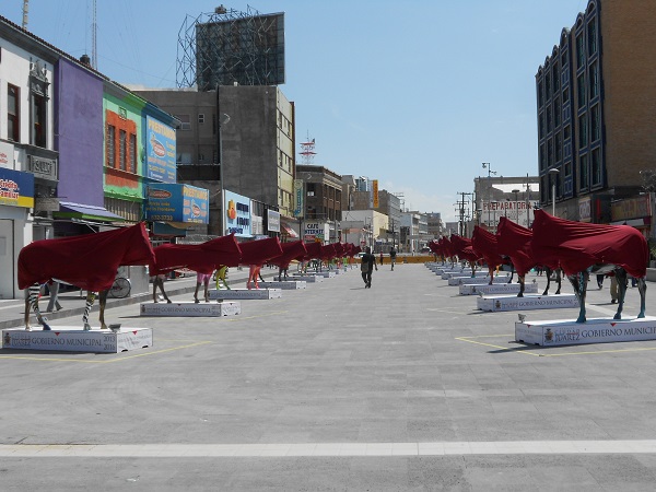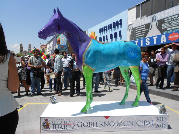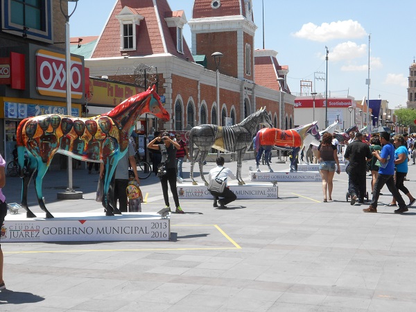 Un total de veinte esculturas decoradas por artistas plásticos y visuales con temáticas fronterizas, fueron presentadas este martes por el gobierno local. Asimismo, fue develada la placa conmemorativa del monumento “Amor por Juárez” que fue levantado en el corredor peatonal sobre el túnel de la avenida 16 de Septiembre.