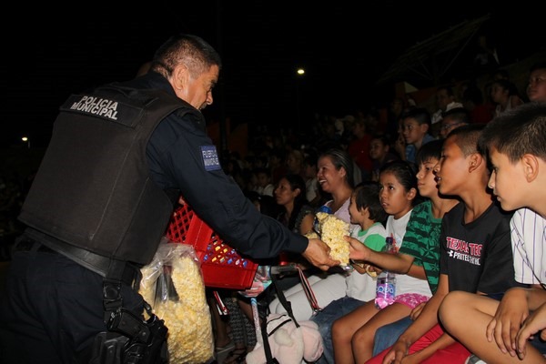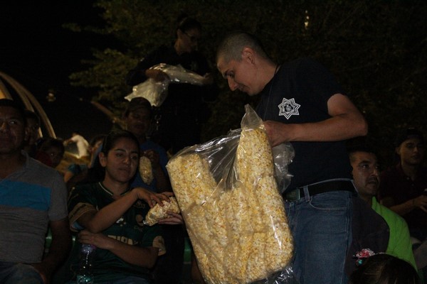 Por segunda ocasión se llevó a cabo una función de cine-móvil en un parque público, contando con policías municipales y cadetes como anfitriones de las familias asistentes.