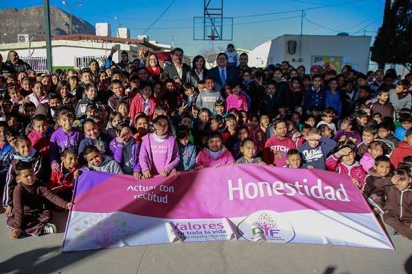 El edil se expresó así al encabezar la ceremonia en la que la escuela Ignacio Manuel Altamirano se realizó la develación de una estructura distintiva y la entrega de un estandarte símbolo de que la institución educativa es promotora y difusora de los valores y derechos de los niños, por parte del Sistema Municipal para el Desarrollo Integral de la Familia (DIF).
