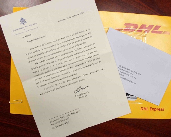A través de una carta enviada al despacho del Presidente Municipal, Javier González Mocken, el Papa Francisco hizo extensivo su agradecimiento al pueblo juarense por la atencion de hacerle llegar los libros en los que miles de personas escribieron sus peticiones y oraciones.