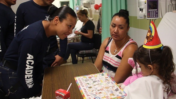 Cadetes de la Academia de la Secretaría de Seguridad Pública Municipal acaban de pasar por el periodo de sensibilización y de proximidad, por lo que entre las actividades visitaron a los pequeñitos que se encuentran en el Hospital Infantil.