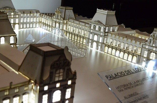 En la exposición se pueden apreciar representaciones de las pirámides del México Prehispánico, la Catedral de Chihuahua, el Palacio de Louvre, Saint Chapelle, la Torre de Alejandría, entre otras, todas ellas elaboradas por alumnos y egresados.