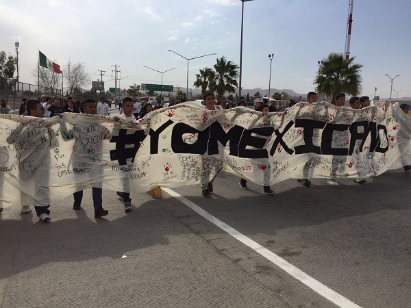 La cita tuvo lugar en el monumento astas banderas antes de llegar al puente libre, donde la misma, comenzó con la colocación de una manta gigante en la que los más de 80 asistentes pudieron plasmar la palma de su mano al igual que un mensaje para todos los mexicanos que cruzan por este puente hacia los Estados Unidos.