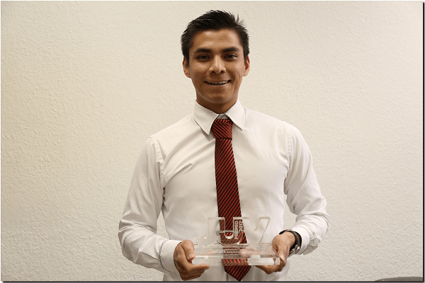 Informó que la estudiante de Ingeniería Ambiental de la UACJ, Ana María Villalobos, fue quien lo propuso ante el Instituto Chihuahuense de la Juventud como candidato al Premio Estatal en la categoría de Logro Académico.