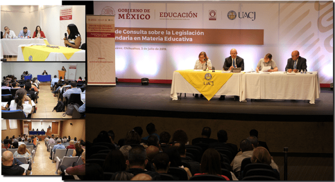 Como parte del proceso para las reformas a las leyes secundarias en materia educativa, en la UACJ se llevó a cabo el cuarto foro para que expertos o interesados en la materia expusieran sus opiniones y planteamientos en relación a las cinco leyes que se están analizando: la Ley General de Educación, Ley General del Sistema para la Carrera de las Maestras y los Maestros, Ley Reglamentaria de la Fracción IX del Art. 3 en materia de la mejora Continua de la Educación, Ley General de Educación Superior y Ley General de Ciencia, Tecnología e Innovación.