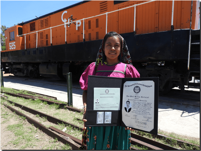«Después de mucho sacrificio hoy puedo decir que he logrado una meta más en mi vida y me siento muy contenta por ser la primera y única en mi comunidad que tiene una carrera, este logro se lo dedico a mi abuela y mi abuelo, que ya no están conmigo pero sé que desde allá gozan de mi logro como ellos lo querían en vida», comentó la joven profesionista en su muro de Facebook.
